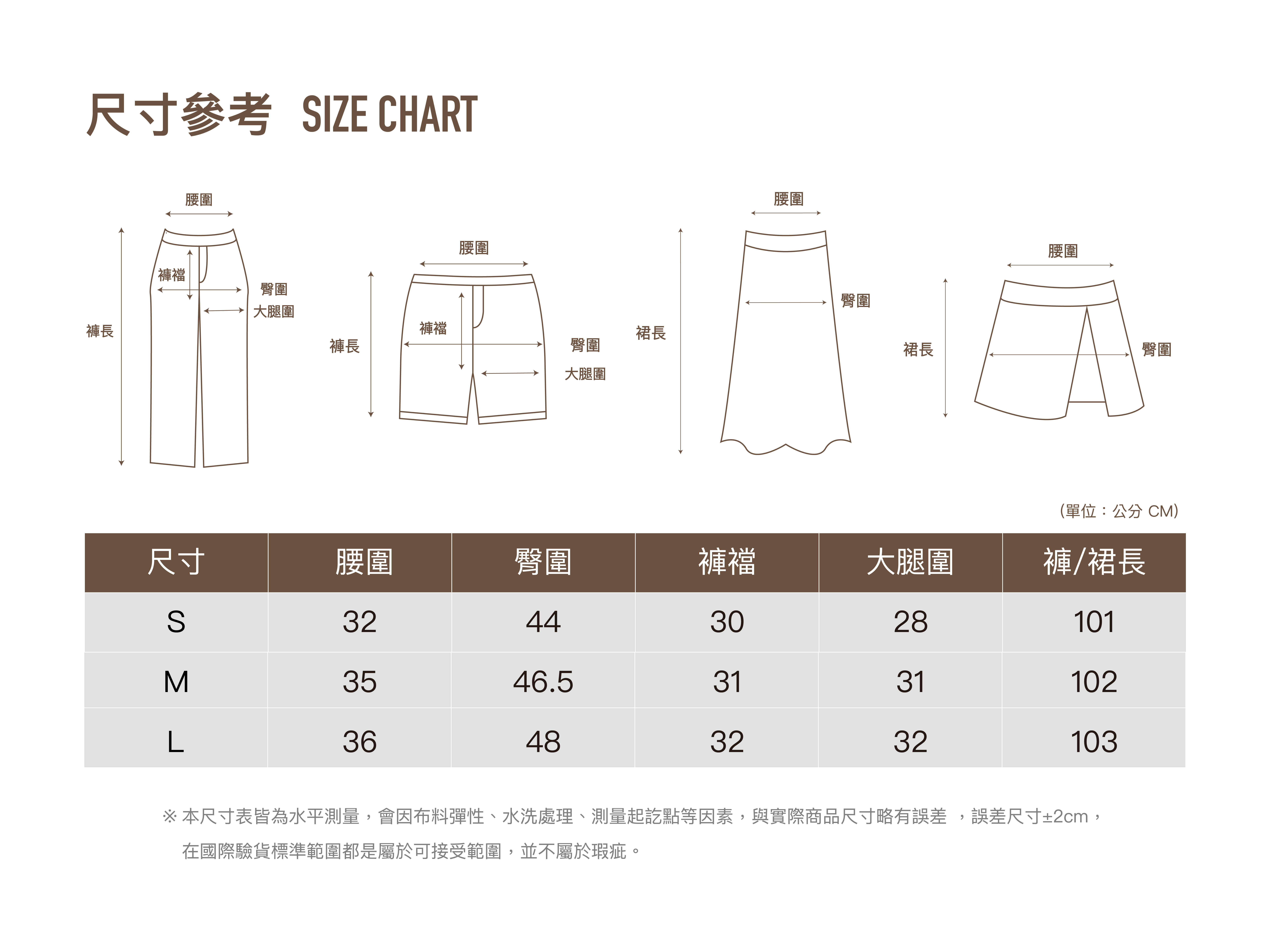 162cm / 51kg / 平常上身S 下身S/M / 70B / 胸圍75cm / 腰圍62cm / 臀圍90cm